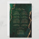 Este elegante y moderno programa de boda presenta un fondo de ágata verde esmeralda recortado con brillo dorado falso. El texto aparece en fuentes de escritura a mano de color dorado y copperplate.