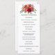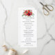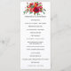 Programa de boda floral acuarela con rosas y peonías rojas, púrpuras, rosadas y borgoña.