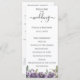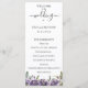 Flores de acuarela púrpura y ramas botánicas verdes, programa de boda. El programa cuenta con un acento de caligrafía linda "boda" con múltiples líneas para listas de texto personalizadas para el orden de los eventos de la ceremonia, la fiesta de boda y una nota de agradecimiento.