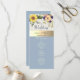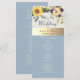 Programa de boda bohemio, rústico, elegante, botánico, azul polvoriento, con girasoles y vegetación.