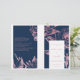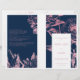 Elegante programa Rosa de Bodas Florales de Oro. Una elegante plantilla de "Programa de Ceremonia Boda" con flores vintage bellamente dibujadas sobre fondo azul marino (puede cambiar el color de fondo para adaptarlo a sus necesidades). Ideal para primavera, verano, jardín, exteriores y bodas de patio trasero.