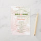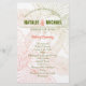 Programa de ceremonias con fondo tropical en verde palmera y coral. Perfecto para su playa o boda.