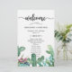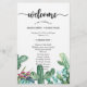 Hermoso y exitoso diseño de hojas de papel del programa Cactus Floral Wedding con una coloración de agua suculenta y cactus floral y una gran "bienvenida" en un guión elegante, una plantilla de programa de boda para que usted lo personalize o personalizar más. Si necesita ayuda o elementos coincidentes, por favor contáctame.