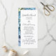 Dé a sus invitados el horario y el orden de su ceremonia matrimonial con el elegante Programa de Bodas Florales Blue Hydrangea. Personalizar con los nombres personales de la novia y el novio y detalles específicos de la ceremonia de boda y cronología. Este programa de bodas botánicas personalizados presenta una fotografía floral de primer plano, pintada digitalmente, de flores de horangea azul claro.