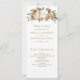 Sorprenda a sus invitados con este elegante programa de boda que presenta hermosas flores y hojas de pino rústicas.