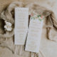 Este elegante programa de bodas floridas y verdes es perfecto para un boda rústico. El diseño se caracteriza por unos rosas pintados a mano, blancos, rosas y ruidosos, con un toque de vegetación, unos marcos geométricos dorados y una belleza artística inspiradora.