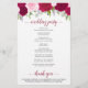 Estos programas de bodas son elegantes y de buen gusto, pero siguen siendo asequibles. El diseño se compone de un conjunto de rosas acuáticos pintados a mano en tonos rosa cálido, magenta y rubor, rodeados de hojas de eucalipto y follaje de jardín. La tipografía incluye caligrafía de escritura de encaje, y hay espacio para detalles de la ceremonia, la fiesta de las novias y un breve agradecimiento.