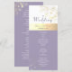 Eleva tu recepción con nuestro menú de boda de lavanda púrpura rústico elegante vintage, adornado con encaje floral dorado boho. Infundido con encanto atemporal, establece el tono para una experiencia culinaria tan encantadora como tu historia de amor. Deleita a tus invitados con un menú que une el encanto rústico con la elegancia sofisticada, prometiendo una celebración llena de sabor y belleza.
