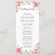 Esta Tarjeta de Programa de Boda Romántico Rosado Florido presenta flores de acuarela pintadas en rosa pálido y blanco, follaje verde oliva con letra manuscrita. Para una personalización más avanzada de este diseño, por favor haga clic en el botón "Personalizar". También están disponibles artículos que coinciden.