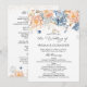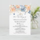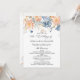 Este diseño presenta una ilustración de acuarela de flores de melocotón pálido y flores sonrosadas azules con confeti de efecto dorado en la parte superior de la tarjeta.
