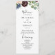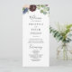 Este programa de bodas con flores y vegetación es perfecto para una boda de invierno. El elegante diseño de boho cuenta con una marina acuarela, flores color rosa rubor y flores enológicas con detalles artísticos pintados con lápices.