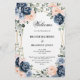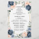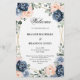 Modesto programa de bodas geométricas florales y azules con elegantes ramos de azul marino / azul turbio, blanco , rubor , rosa de melocotón y hojas de eucalipto verde salado y elegante marco geométrico neutro purpurina. Comuníquese conmigo para obtener ayuda sobre la personalización o si necesita cualquier otro producto con este diseño.