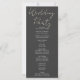 Presentando nuestro Programa de Boda Twilight Harvest, una moda y una elección contemporánea diseñada para abarcar la esencia del otoño de una manera moderna y ligeramente bohemia. El programa presenta un sofisticado fondo gris oscuro que prepara el escenario para un diseño cautivador. Un coqueto carrito ocupa el centro del escenario, repleto de una deliciosa gama de naranjas claros, naranjas oscuros vivos y calabazas blancas, todo ello rodeado de un entorno de exuberante hierba y vegetación. Este moderno y bohemio diseño otoñal le da un toque de encanto a su boda, capturando el calor y la belleza de la temporada de otoño de una manera elegante y refinada. En el reverso del programa se muestra una lista meticulosamente arreglada de la fiesta de bodas con fuentes clásicas en negro y gris. El tipo de letra de bloque predominantemente simple garantiza claridad y legibilidad, manteniendo una estética limpia y moderna. Añadiendo un toque caprichoso y romántico, las palabras "Bienvenida", "Ceremonia" y "Fiesta de la Boda" se presentan elegantemente en una fuente decorativa de escritura. Estos elementos guionados infunden el programa con un estilo personalizado y encantador, convirtiéndolo en un placer para su celebración especial. Elija el Programa de Boda Twilight Harvest para una interpretación contemporánea y elegante del otoño, combinando el encanto del diseño moderno con el encanto intemporal de la temporada de otoño. Con su sofisticada paleta de colores y sus preciosos detalles, este programa es la elección perfecta para las parejas que buscan un conservador boda que refleja de forma bella el espíritu único y cautivador del otoño.