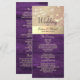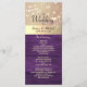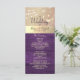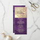Captura la esencia de la elegancia atemporal con nuestra tarjeta de programa de boda moderna pero inspirada en la madera rústica de granero. Delicadamente adornada con ricos tonos morados, encaje floral dorado intrincado y luces de cuerda caprichosas, combina sin problemas el encanto boho con el estilo contemporáneo. Cada detalle, desde la fuente de caligrafía de moda hasta las texturas rústicas naturales, promete una celebración tan única y encantadora como tu historia de amor.