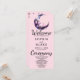 Presentamos nuestro Programa de Bodas Celestiales de Rubor, una deliciosa mezcla de romance y encanto que le dará un toque de magia celeste a su día de bodas. El programa cuenta con un suave fondo rosa, que recuerda a una pintoresca puesta de sol, y sirve como el lienzo perfecto para una cautivadora luna de luna azul y violeta. La luna, adornada con enormes nubes azules y violetas, está adornada con un baile celestial de estrellas amarillas, doradas y doradas rosas, lo que crea una atmósfera verdaderamente fascinante y de otra índole. En la parte trasera del programa, su estimada fiesta de bodas aparece elegantemente, reconociendo sus importantes roles en su día especial. El texto dentro del programa se presenta cuidadosamente en una combinación armoniosa de negro y gris, utilizando principalmente un tipo de letra de bloque simple para mayor claridad y legibilidad. Sin embargo, las palabras "Bienvenida", "Ceremonia" y "Fiesta de la Boda" están elegantemente escritas en un tipo de letra decorativa, agregando un toque de sofisticación al diseño y mejorando el tema celeste general. Nuestro Programa Celestial Rubor Wedding es la elección perfecta para parejas que buscan un tema boda único y místico. Con su armoniosa paleta de colores y sus elegantes fuentes de escritura, este programa no sólo sirve como guía práctica para sus invitados, sino que también se convierte en un querido keepsake, capturando la belleza etérea de una noche iluminada por la luna. Elevar a tu boda al reino del encanto celeste con el Programa de Bodas Celestes de Rubor, un testamento de tu historia de amor ambientada en el contexto del cosmos místico.