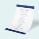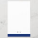 Volante moderno del programa de bodas con presupuesto azul marino con una banda atrevida en la parte superior e inferior. Sus nombres están en un tipo de letra serif clásico y sus detalles están en una combinación de un tipo de letra sans serif moderno y un guión elegante. La parte posterior tiene una banda en la parte inferior junto con su monograma. Este diseño sencillo y mínimo, con una redacción tradicional, es ideal para un boda formal.