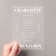 Este moderno y audaz programa de bodas presenta una tipografía blanca nítida en un minimalista diseño acrílico. Su diseño elegante y limpio muestra los detalles de la ceremonia en un formato elegante y atemporal, perfecto para celebraciones sofisticadas y contemporáneas. El material acrílico añade un toque único y de moda, asegurando que su programa de bodas complemente su día especial con una estética lujosa y elegante. Ideal para parejas que buscan un diseño moderno y minimalista con acentos audaces, este programa es funcional y visualmente llamativo.