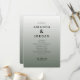 Este programa de boda presenta un diseño minimalista y elegante con una disposición vertical y texto centrado para una apariencia equilibrada. La paleta de colores incluye texto negro sobre un sutil fondo gris degradado, creando un aspecto sofisticado. Utilizando tipografía digital limpia, el diseño enfatiza la claridad y la formalidad, lo que lo hace perfecto para un evento clásico. El ambiente es refinado y anticipatorio, centrándose únicamente en la información textual estructurada sin elementos decorativos adicionales, ideal para parejas que buscan simplicidad en su papelería de boda.