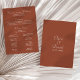Presentamos nuestro Programa de Boda de Terracota Minimalista Moderno, diseñado para parejas que buscan elegancia discreta en su día especial. Impreso en papel de alta calidad para programas planos, este programa de boda captura la esencia de la simplicidad moderna con su tono terracota y diseño minimalista.