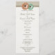 Daisies de melocotón y verde menta con el encanto rústico vintage de los programas de bodas con tarjetas en rack impresas en burlap.