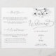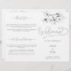 Una rama de magnolias, dibujada a mano con lápiz de grafito negro, decora este elegante, sencillo, elegante y moderno programa de boda plegable. Presenta una caligrafía de escritura moderna y elegante con abundantes florecientes. Lujoso pero sencillo, clásico pero moda, moderno pero atemporal. Una elección muy agradable para un boda primaveral o veraniego con magnolias en el ramo nupcial o como acentos.