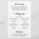 Programa de boda con foto minimalista con un diseño simple que incluye "bienvenidos a nuestra boda" junto con sus nombres, fecha y ubicación sobre su foto favorita. La parte trasera tiene el orden de la ceremonia, la fiesta de bodas y el mensaje de agradecimiento en negro sobre un fondo blanco. Las palabras de acento están en una elegante escritura a mano con florituras para un toque moderno y chic. Estos programas de boda económicos se imprimen en hojas de papel para una opción económica.