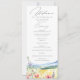 Guíe a sus invitados a través de su celebración con este majestuoso programa de boda y orden de servicio de acuarela de montaña. Con una impresionante cordillera pintada a mano y un prado de flores silvestres en flor, este horario de ceremonia es el recuerdo perfecto para bodas rústicas al aire libre y escapadas de aventura. El diseño elegante proporciona una forma profesional de presentar a su cortejo nupcial, enumerar el orden procesional y compartir un sentido mensaje de agradecimiento con amigos y familiares. Diseñado para coordinar con temas de boda de flores silvestres, esta guía de ceremonia agrega un toque sofisticado y artístico a la decoración de su recepción. Ya sea que esté organizando una boda de destino o una ceremonia romántica en un prado, estos programas aseguran que sus invitados estén informados mientras capturan el espíritu caprichoso de su historia de amor inspirada en la naturaleza
