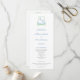 Este clásico programa de bodas presenta un escudo botánico de acuarela intemporal de color verde savia y azul medio.