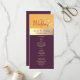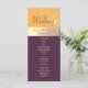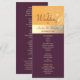 Elegante, moderno, tonos joya, programa de boda amarillo y morado ciruela, con encaje floral dorado y caligrafía sencilla.