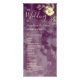 Programa de boda morado rústico, elegante y chic con flores doradas y letra moderna.