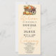 Presentamos nuestro Programa de Bodas de Susurro Papaya, una deliciosa fusión de sofisticación moderna y encanto bohemio que resume perfectamente el espíritu del otoño. El programa presenta un cálido y acogedor fondo de naranja de látigo de papaya, creando un lienzo que marca el tono para una celebración vibrante y memorable. Al frente del diseño se encuentra un caprichoso carro lleno de un delicioso surtido de naranjas claros, naranjas oscuros vívidos y calabazas blancas impecables. Esta disposición llamativa está rodeada de exuberante hierba y vegetación, creando un festín visual que capta la esencia de la temporada de otoño. El diseño moderno y ligeramente bohemio le da un toque de elegancia ecléctica, lo que lo convierte en una elección ideal para las parejas que buscan una representación única y contemporánea del otoño. Pasando a la parte trasera del programa, encontrarás una lista cuidadosamente seleccionada de la fiesta de boda con letras clásicas en negro y gris. El tipo de letra de bloque predominantemente simple garantiza claridad y legibilidad, manteniendo una estética limpia y moderna. Añadiendo un toque de romance y encanto, las palabras "Bienvenida", "Ceremonia" y "Fiesta de Bodas" se presentan en un guion decorativo. Estos elementos guionados infunden el programa con un toque personalizado y encantador, creando un keepsake tan único como su historia de amor. Elija el Programa de Bodas de Susurro Papaya para hacer una declaración audaz con su paleta de colores cálidos y su diseño cautivador. Este programa es la elección perfecta para las parejas que buscan un conservador boda que refleja de forma bella el espíritu único y cautivador del otoño, mezclando la elegancia moderna con el encanto atemporal de la temporada de otoño.