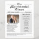 The Matrimonial Times, un divertido programa de boda presentado en estilo tabloide de periódico que es fácil de editar con los detalles de su boda. Incluye una lista de quién es quién, orden del día, menú, lista de personas extrañadas y un mensaje especial de agradecimiento. No olvide cambiar la foto por una de las suyas