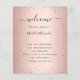 Un moderno y elegante programa de bodas, cronología. Rubor, fondo de color oro rosa decorado con un polvo falso purpurina. Personalice y agregue sus nombres y detalles del boda. Letras de color negro. Si tienes más texto es posible reducir el espacio de línea.