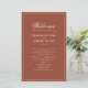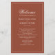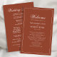 Mejore su día especial con estos elegantes programas de ceremonia de bodas, que incluyen un tema de color burdeos de óxido y escritura caligráfica clásica. Esta disposición de doble cara de una sola hoja ofrece un estilo simplista y sofisticado, mostrando con gusto su orden de servicio y la lista de fiestas de novias. La elegante tipografía de moda complementa la estética tradicional y formal, mientras que el elegante diseño elegante añade un toque refinado. Perfecto para una moda sin esfuerzo y un boda atemporal