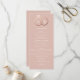 El texto limpio y moderno es fácilmente personalizado en esta moda, formato delgado, programa de bodas. El tipo blanco se siente sofisticado y femenino cuando se acentúa con un falso Relieve metalizado de oro rosa gráfico de anillos de boda entrelazados sobre un fondo de polvoriento rosa beige.