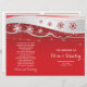 Hermosas filas de copos de nieve rojos y blancos y estrellas bodas de color gris plateado doblado y programa fiesta con una banda ondulada con copos de nieve con estrellas rojas y blancas y grises plateados sobre fondo rojo. Se trata de una elección ideal para un invierno de diciembre o un boda de Navidades. Doblarlo por la mitad para tener un programa de boda doblado. El tipo de papel de valor se dobla bien, así que elija sólo eso.