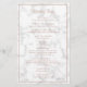Volante moderno y elegante para el programa de bodas con detalles en un falso oro rosa, rodeado por un borde, sobre un fondo de mármol gris y blanco. Los encabezados están en una fuente de script elegante. Añade tus eventos de ceremonia al frente y tu fiesta de boda al fondo. Esta moda y su diseño elegante son ideales para una celebración en invierno. Estos programas de boda baratos se imprimen en hojas de papel para una opción asequible.
