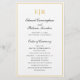 Elegante folleto de programa de bodas con presupuesto fijo con su monograma y un borde en oro falso que rodea sus detalles. Sus nombres y encabezados están en caligrafía. La parte delantera tiene tu orden de ceremonia y la parte trasera tiene tu fiesta de boda y mensaje de agradecimiento. Estos sencillos y clásicos programas de boda son excelentes para un boda formal y se imprimen en hojas de papel para una opción económica y económica.