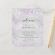Un moderno y elegante programa de bodas, cronología. Fondo falso plateado decorado con polvo de purpurina morado y falso plateado. Personalice y agregue sus nombres y detalles del boda. Letras de color negro.