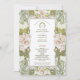 Este programa de bodas de inspiración vintage es una hermosa representación de diseño Art Nouveau, con elegantes rosas rosas rosas y un suave motivo floral verde. La parte delantera de la tarjeta acoge a los clientes con flores delicadas, rodeados de ondulantes viñas verdes, que aportan un toque natural y sofisticado a la distribución general. El suave fondo beige contrasta perfectamente con los exuberantes elementos botánicos, mientras que el sutil uso de los acentos dorados aporta un toque de lujo intemporal. Al contrario, los detalles de la boda se enmarcan en el mismo diseño floral intrincado, lo que garantiza un ambiente cohesivo y artístico. Este diseño es ideal para las parejas que buscan una temática boda refinada, elegante e inspirada en la naturaleza.