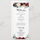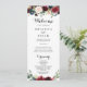 Este programa de bodas de caligrafía burdeos rústico de otoño es perfecto para un boda moderno. El diseño es de color burdeos, rojo, marino, azul y ondulante radiante y flores elegantes pintadas a mano, inspirando la belleza natural.