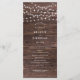 Fondo rústico de madera oscura y programa festivo de boda con luces de cuerda. Vea el enlace de colección completa directamente bajo la imagen principal. Póngase en contacto con el diseñador para obtener ayuda sobre la configuración de textos y/o solicitudes especiales.