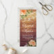 Plantillas de tarjetas para rack del programa de bodas - Elegante guión con luces de flores y cuerdas de rosas blancas de color rosa sobre fondo de madera rústica. ¡Un Diseño Perfecto Para Tu Gran Día! Todos Los Estilo De Texto, Los Colores Y Los Tamaños Se Pueden Modificar Para Ajustarse A Sus Necesidades.