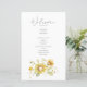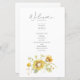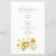 Este alegre programa de bodas de girasol amarillo bohemia acuática presenta elegantes girasoles acuarelas con follaje verde claro entrelazados sobre una tipografía única. Un tema maravilloso para bodas de primavera, bodas de verano y bodas de otoño y fácil de personalizar. Basado en una acuarela original de © Lisa Audit Art. Rodearse con un reconfortante arte.