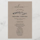 Hermoso diseño de hoja de papel del programa MOUNTAIN WEDDING con un motivo bosquejo de montaña y una gran "bienvenida" en un guión elegante, así como detalles del programa de bodas sobre un fondo rústico texturizado para que usted pueda personalizar.