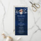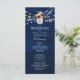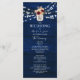 Guíe a sus invitados a través de su ceremonia con estilo con este programa de boda de azul marino rústico. Decorado con luces de cuerda brillantes, acentos florales y un monograma de frasco de mason, este diseño de doble cara incluye el orden de la ceremonia y detalles de la fiesta de boda. Una combinación perfecta para su tema de boda de granero romántico o campestre. Para obtener ayuda para personalizar, envíe un correo electrónico a bpkolman@gmail.com.