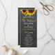 Elegante plantilla de programa rústico de ceremonias de boda de campo con dos hermosos girasoles naranjas amarillos y una falsa caligrafía de moda dorada y blanca grabada en un fondo de tiza de carbón gris oscuro.+++++++++ ¡Personalízalo con tus detalles! Para realizar más cambios, seleccione la opción PERSONALIZAR MÁS. ++++++++ Adecuado para jardín rural | verano o otoño | bodas al aire libre en el patio trasero. ++++++++++ Si necesita ayuda para cambiar el diseño, por favor contáctame!