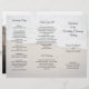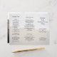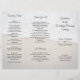 Programa de bodas plegadas en el mar con dunas de playa e imágenes de surf. El papel Z-pliegue o triple plegado tiene imágenes de arena de playa como fondo a ambos lados de papel de lino de 8 x 11 pulgadas (o elegir otro tipo). En el primer lado, todo el texto se divide en tres secciones. Ambas secciones laterales se doblarán hacia dentro alrededor de la parte posterior del programa donde se imprime el texto de "Orden de la Ceremonia" - este será el centro interior.