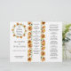 Programa de boda triple plegado con tulipanes naranja acuarela, en la parte posterior de la tarjeta es una flor floral primavera opcional. Tenga en cuenta que cambiar el tipo de papel puede hacer que el programa sea difícil de doblar.