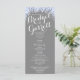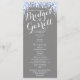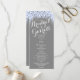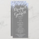 Twinkle ilumina los programas de boda de tarjetas en rack impresas de diseño azul y gris con texto blanco.